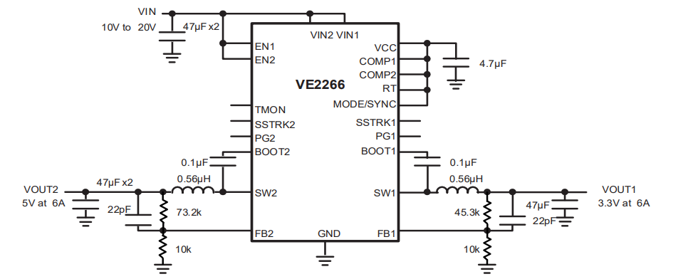 Internal clock phase-shifted 180 degrees, supporting two-phase parallel operation or dual independent operation